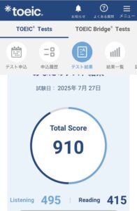 目標のTOEIC900点以上(910)達成